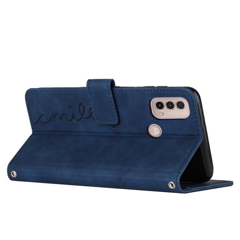 Για Motorola Moto E20/E30/E40 δέρμα αίσθηση καρδιά μοτίβο δερμάτινη θήκη τηλεφώνου (μπλε)