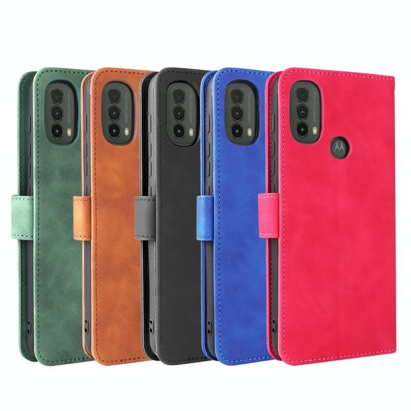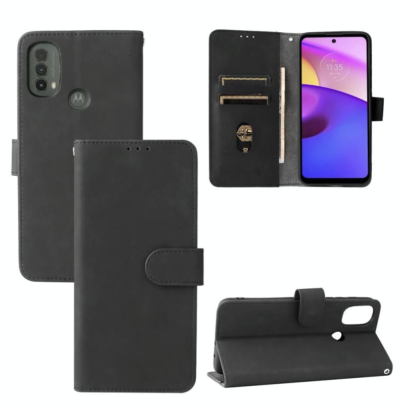 Θήκη δέρματος οριζόντιας αναδίπλωσης με μαγνητικό κλείσιμο για Motorola Moto E20 / E30 / E40 με υφή δέρματος, με βάση & υποδοχές καρτών & πορτοφόλι (Μαύρο)