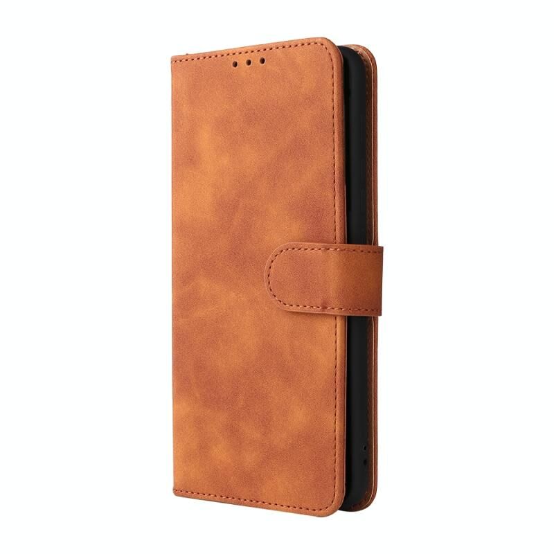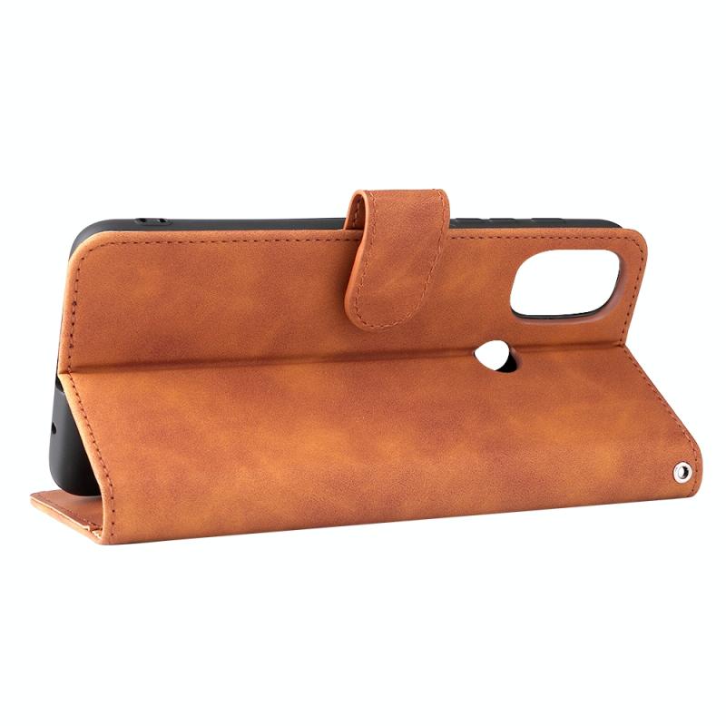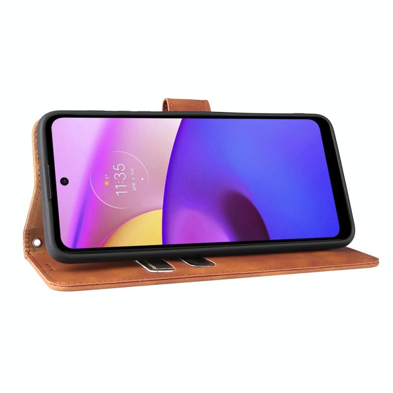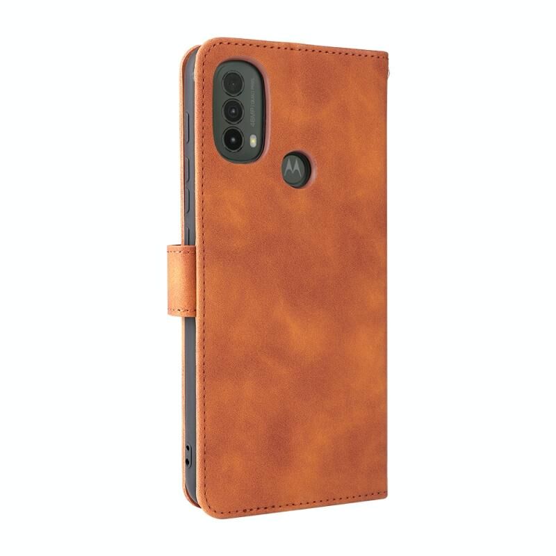 Θήκη δέρματος οριζόντιας αναδίπλωσης με μαγνητικό κλείσιμο για Motorola Moto E20 / E30 / E40 με υφή δέρματος, με βάση & υποδοχές καρτών & πορτοφόλι (Καφέ)