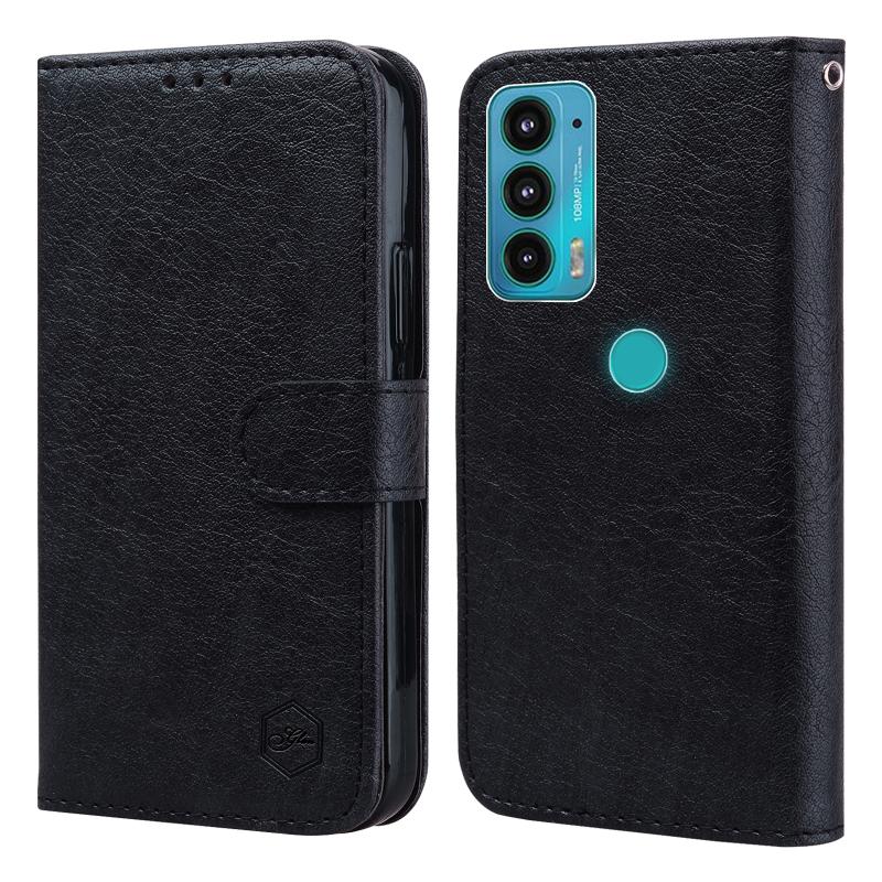Θήκη κινητού τηλεφώνου για Motorola Moto E20 / E30 / E40 με υφή δέρματος λαδιού PU + TPU (Μαύρο)