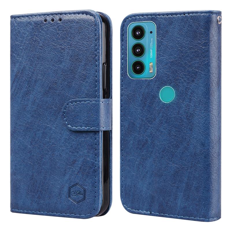 Θήκη κινητού τηλεφώνου για Motorola Moto E20 / E30 / E40 με υφή δέρματος λαδιού PU + TPU (Σκούρο μπλε)