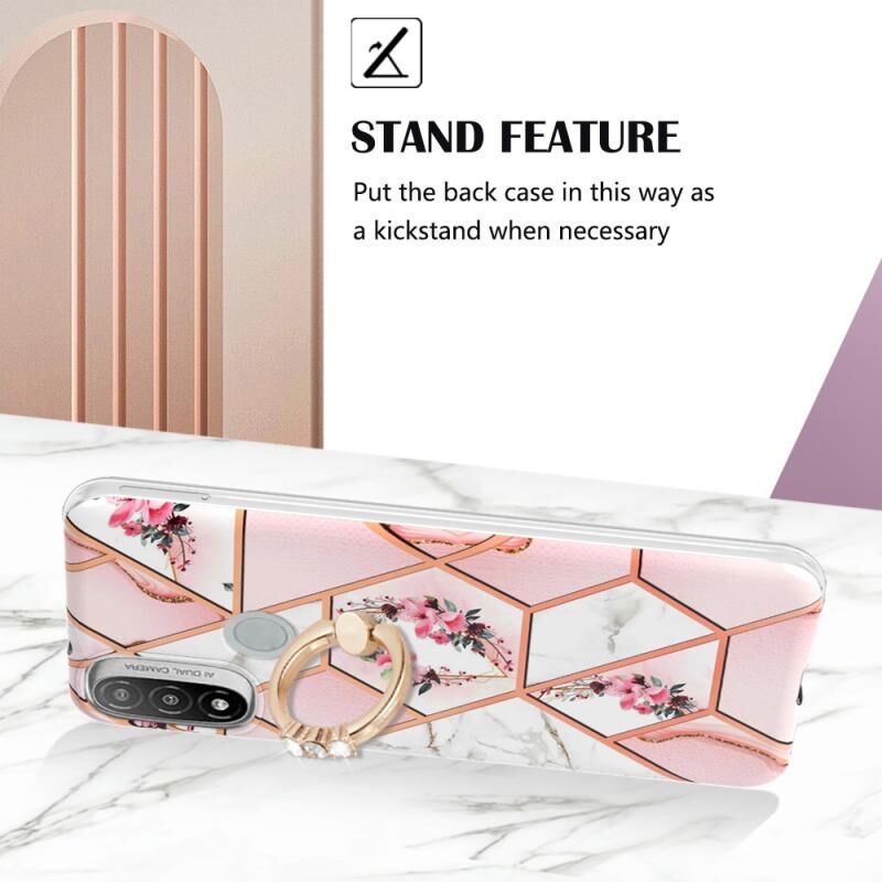 Θήκη για Motorola Moto E20 / E30 / E40 με σχέδιο μαρμάρινου λουλουδιού, από TPU με δακτύλιο στήριξης (Ροζ Λουλούδι)