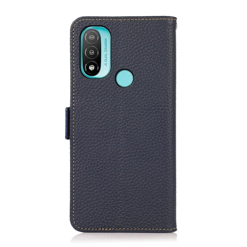 Θήκη για Motorola Moto E20 / E40 KHAZNEH με μαγνητικό κλείσιμο, γνήσιο δέρμα Litchi, με προστασία RFID (Μπλε)