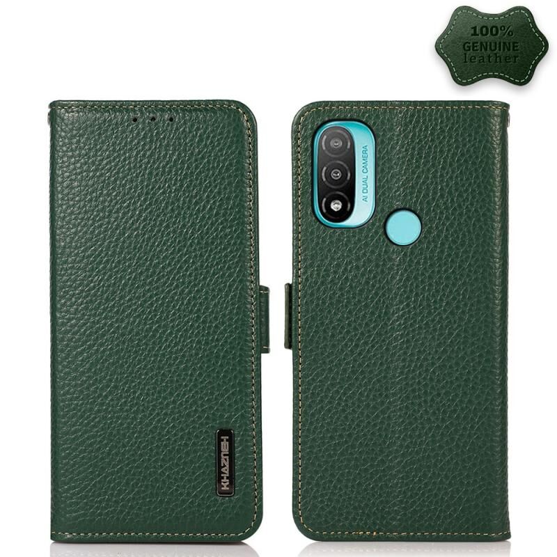 Θήκη για Motorola Moto E20 / E40 KHAZNEH με μαγνητικό κλείσιμο, γνήσιο δέρμα Litchi, με προστασία RFID (πράσινο)