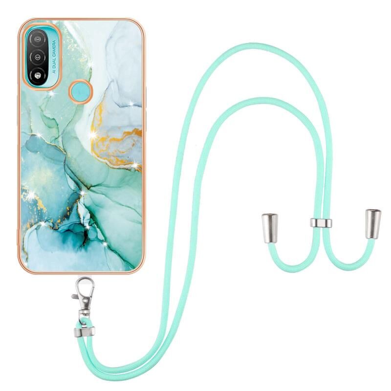 Θήκη κινητού τηλεφώνου για Motorola Moto E20 με ηλεκτρολυτική επίστρωση, σχέδιο μάρμαρου IMD, από TPU με κορδόνι (Μωβ 001)