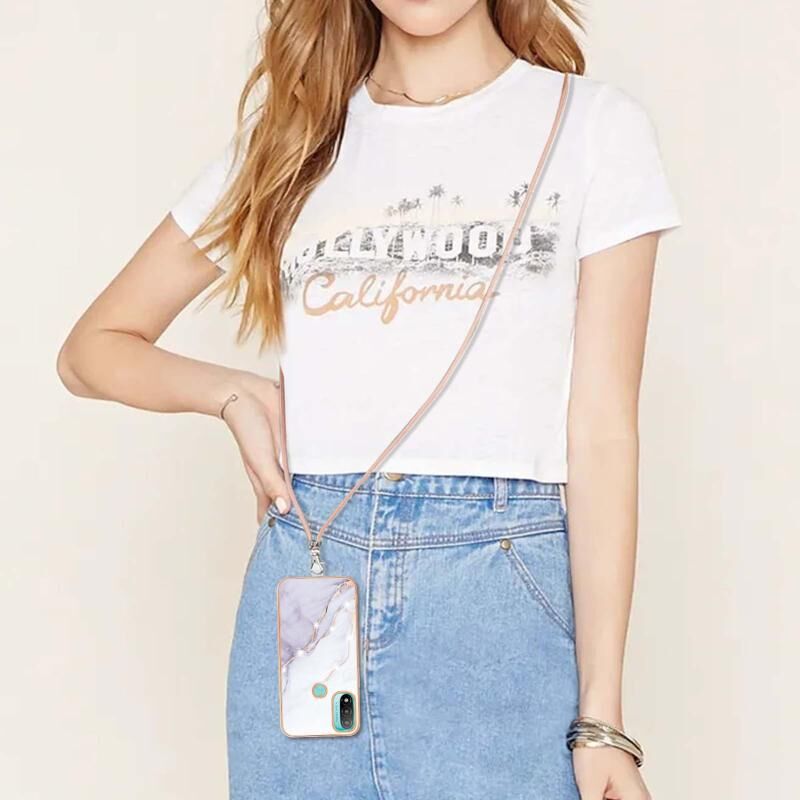 Θήκη κινητού τηλεφώνου για Motorola Moto E20 με ηλεκτρολυτική επίστρωση, σχέδιο μάρμαρου IMD, από TPU με κορδόνι (Λευκό 006)