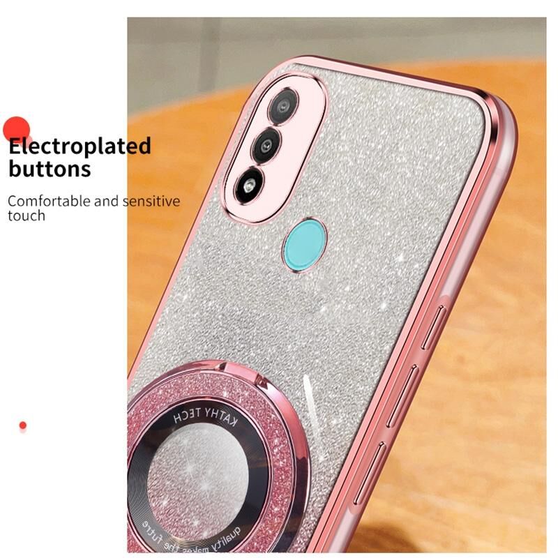 Για Motorola Moto E20 Επιμεταλλωμένο βαθμιδωτή Glitter στρογγυλή θήκη TPU τηλέφωνο κάτοχος (μωβ)