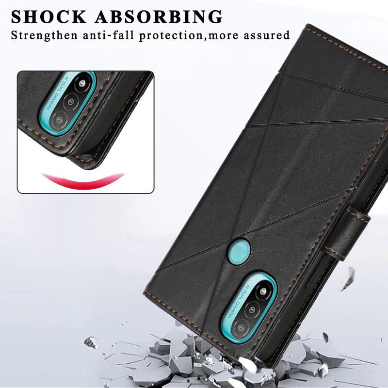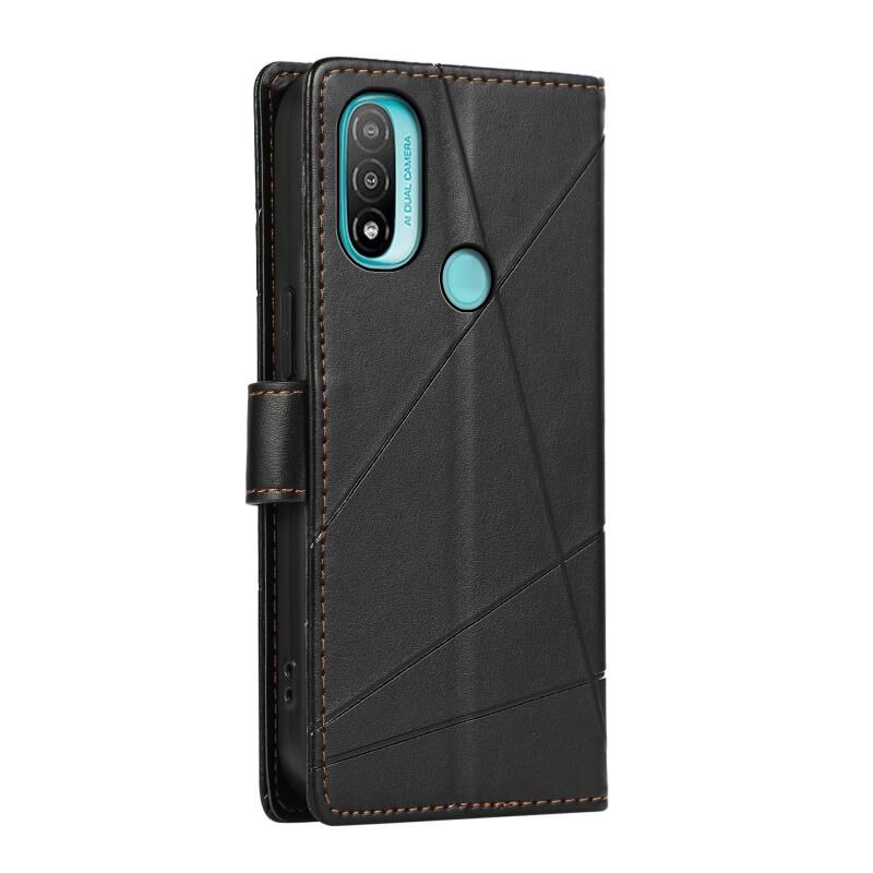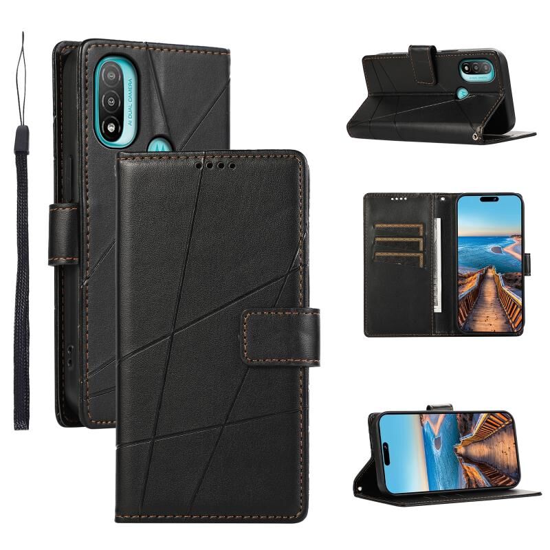 Θήκη κινητού τηλεφώνου Motorola Moto E20 PU με ανάγλυφη υφή δέρματος (Μαύρο)