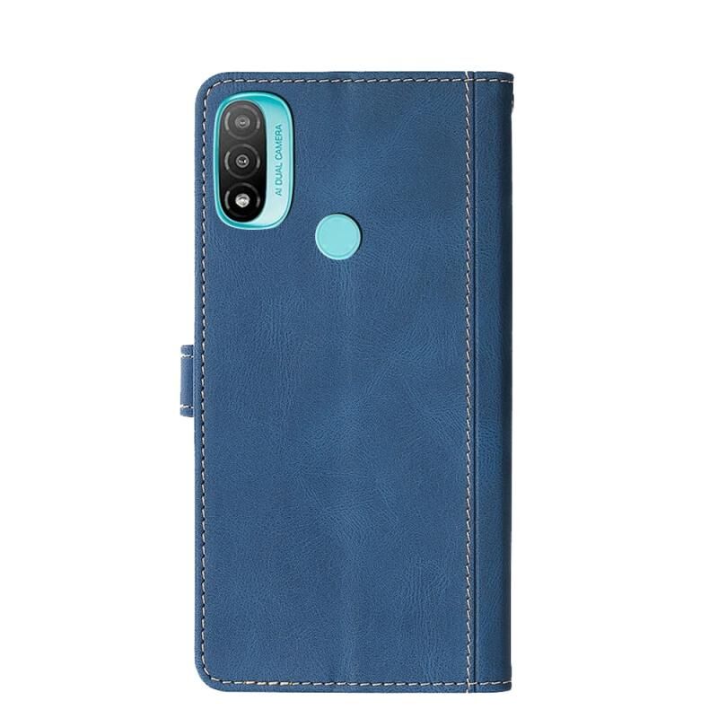 Για Motorola Moto E20 ραφή δέρμα αίσθηση μαγνητική πόρπη PU δέρμα τηλέφωνο υπόθεση (μπλε)