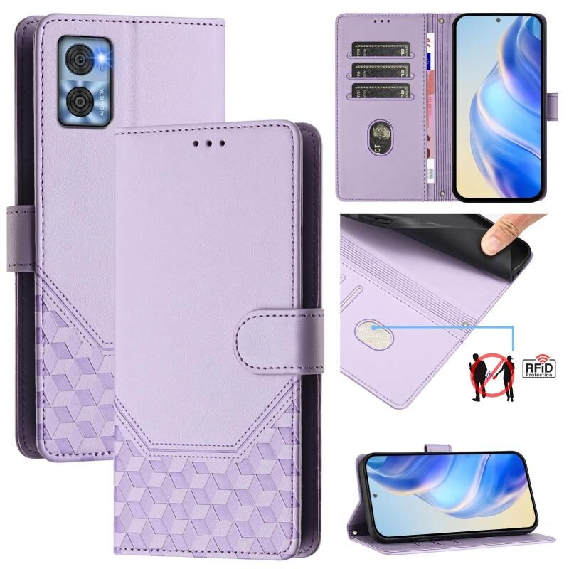 Για Motorola Moto E22 4G / E22i 4G Honeycomb ανάγλυφη RFID δερμάτινη θήκη τηλεφώνου (ανοιχτό μοβ)