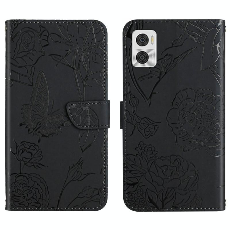 Για Motorola Moto E22 4G HT03 δέρμα αίσθηση πεταλούδα ανάγλυφο Flip υπόθεση τηλεφώνου δέρμα (μαύρο)