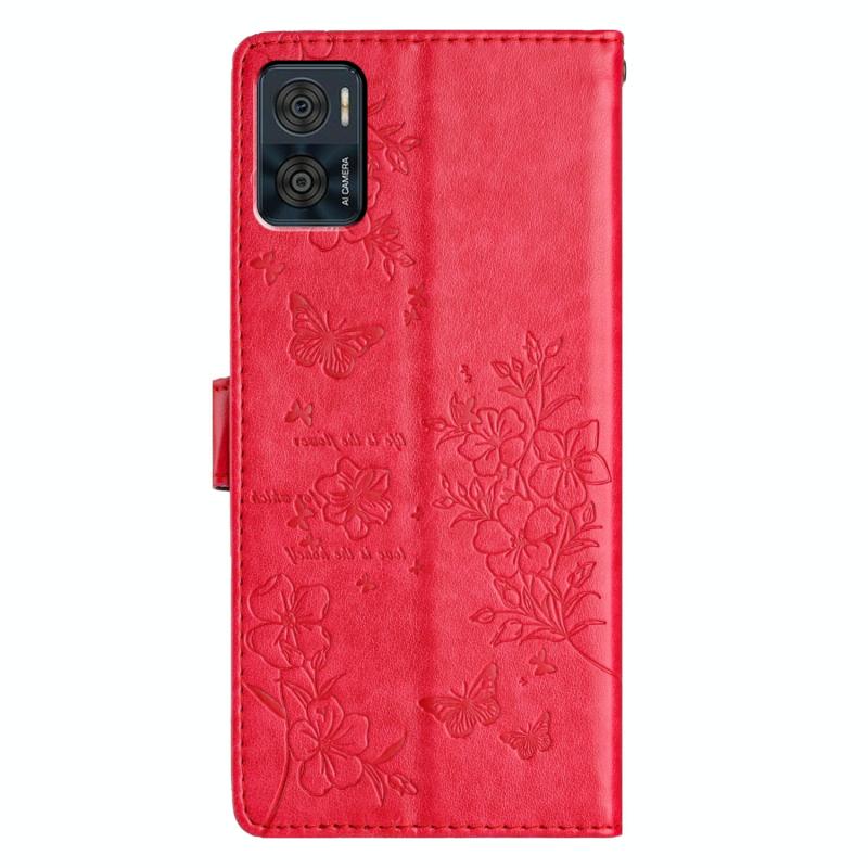 For Motorola Moto E22 Butterflies and Flowers Leather Phone Case(Red)
