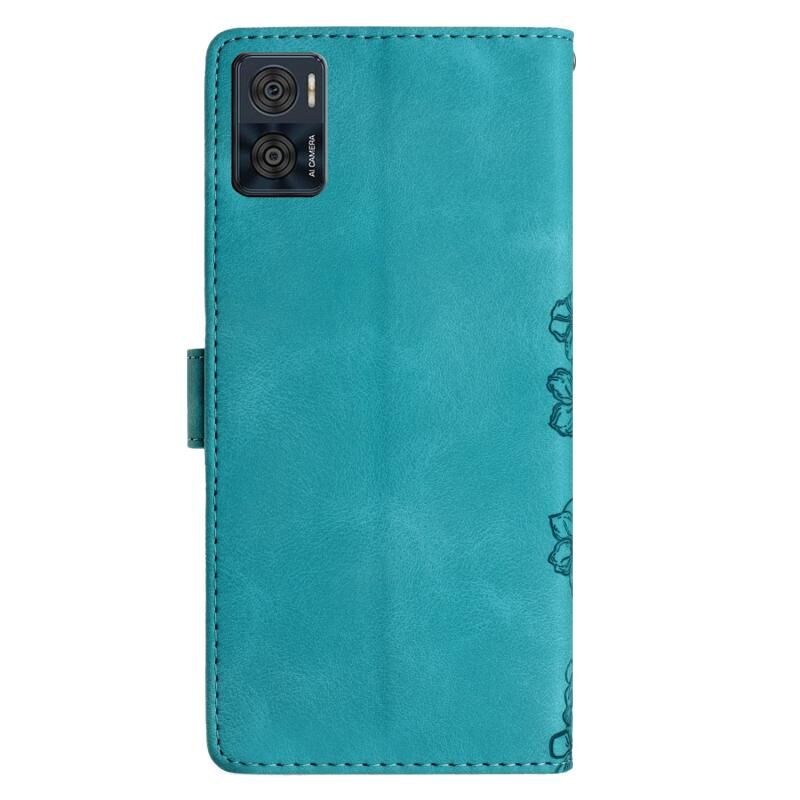 Θήκη κινητού τηλεφώνου Motorola Moto E22 Cherry Blossom Butterfly Skin Feel Embossed PU (πράσινο)