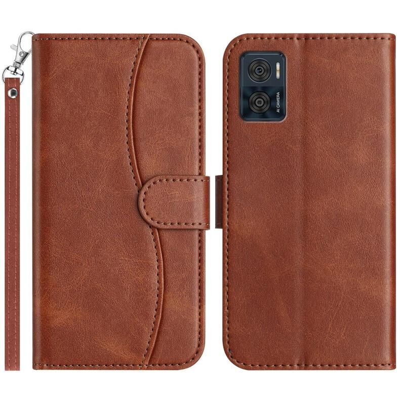 Θήκη τηλεφώνου δερμάτινη, διπλωμένη σε σχήμα S για Motorola Moto E22 Dual (Καφέ)