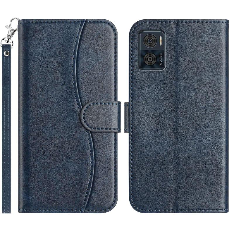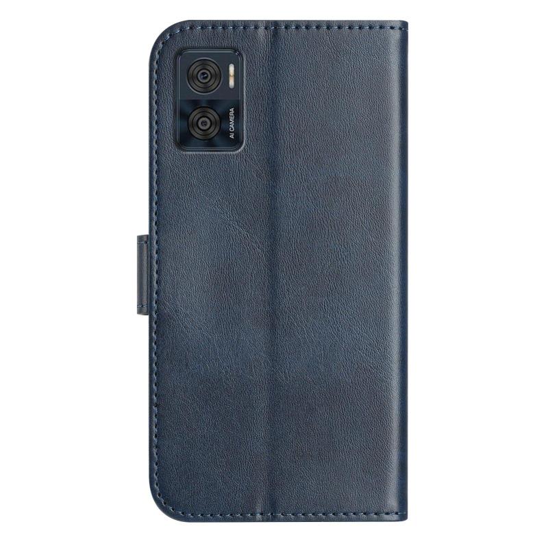 For Motorola Moto E22 Dual-Folded S-shape Leather Phone Case(Navy Blue)