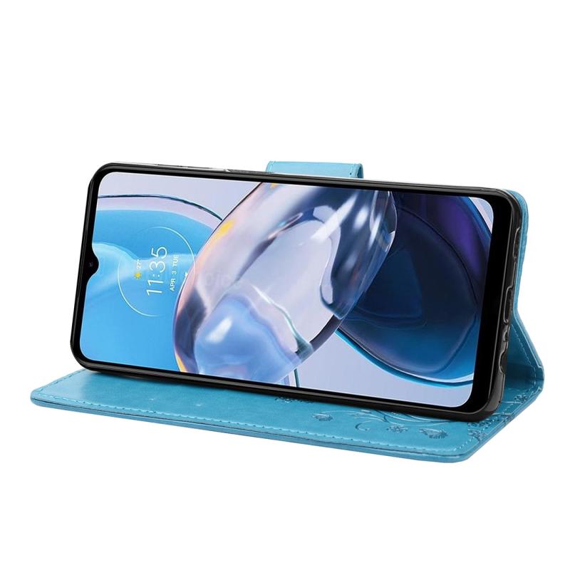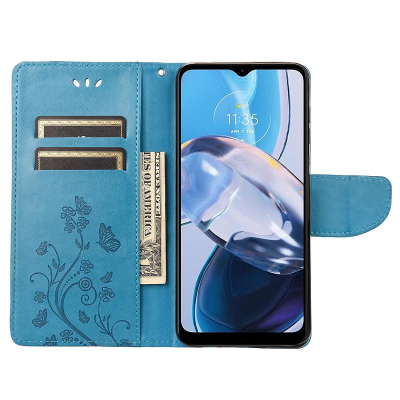 Θήκη τηλεφώνου από δέρμα με σχέδιο πεταλούδας και λουλουδιών για Motorola Moto E22 / E22i (Πράσινο)