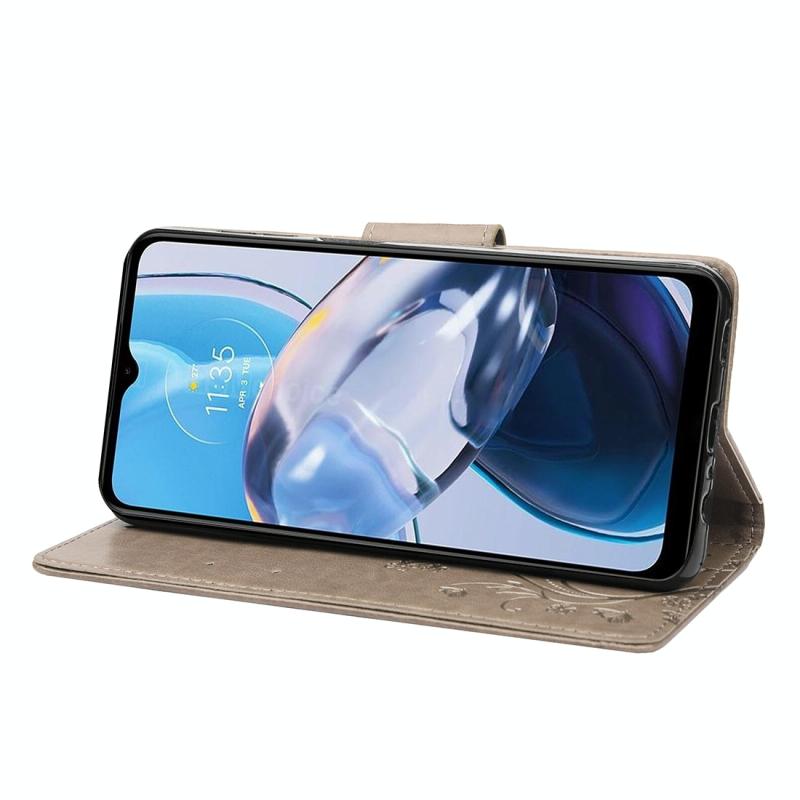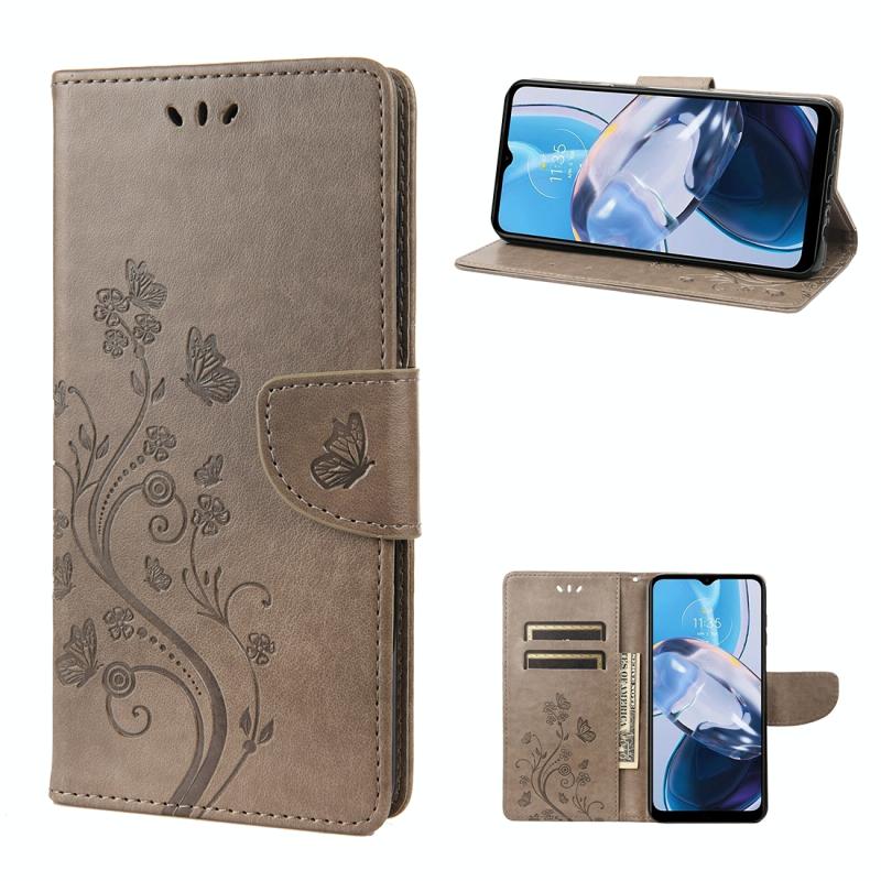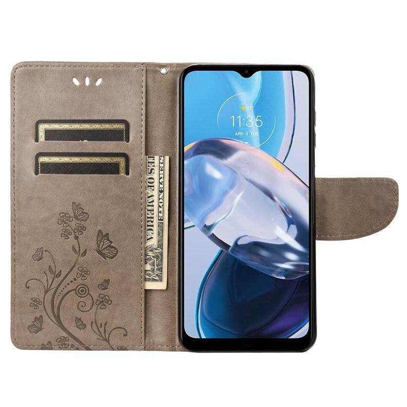Θήκη τηλεφώνου από δέρμα με σχέδιο πεταλούδας και λουλουδιών για Motorola Moto E22 / E22i (Πράσινο)
