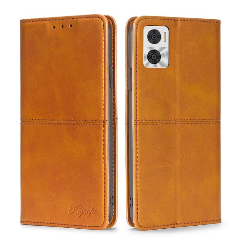 Θήκη τηλεφώνου Motorola Moto E22/E22i με μαγνητικό κλείσιμο, δερμάτινη, οριζόντια, με υφή αγελάδας (Ανοιχτό καφέ)