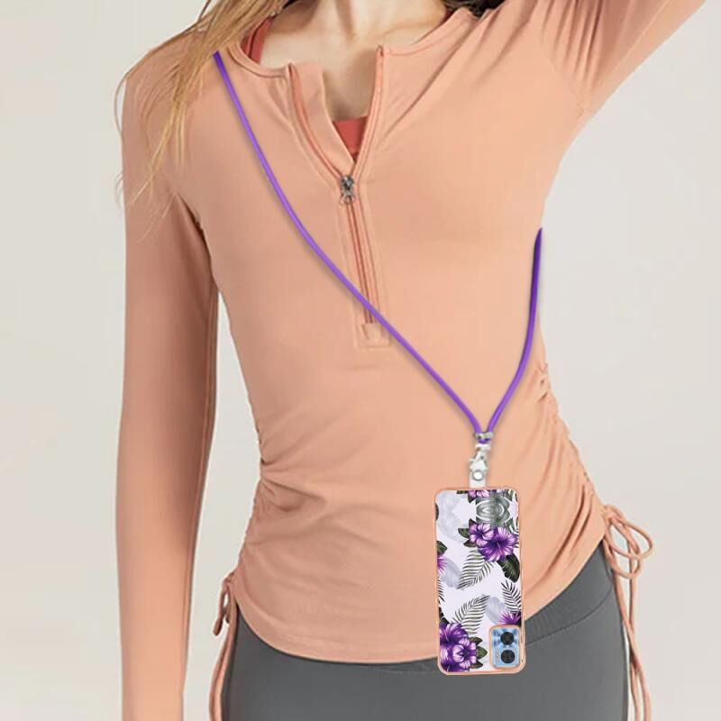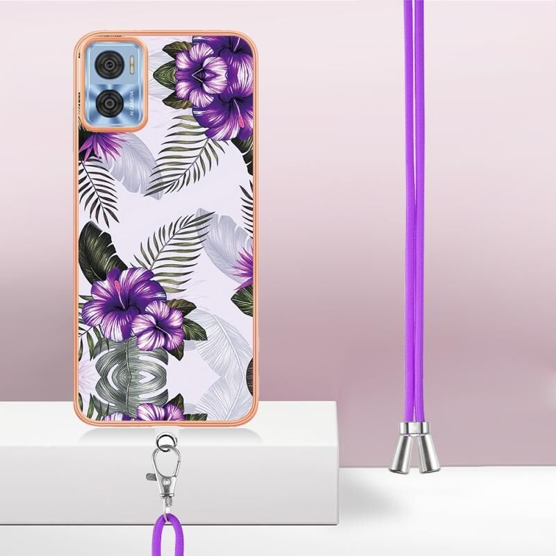 Θήκη κινητού τηλεφώνου Motorola Moto E22/E22i με επιμετάλλωση IMD TPU με κορδόνι (Μωβ Λουλούδι)
