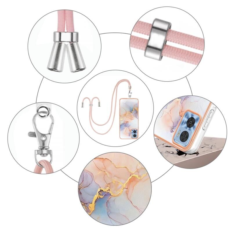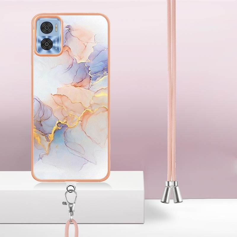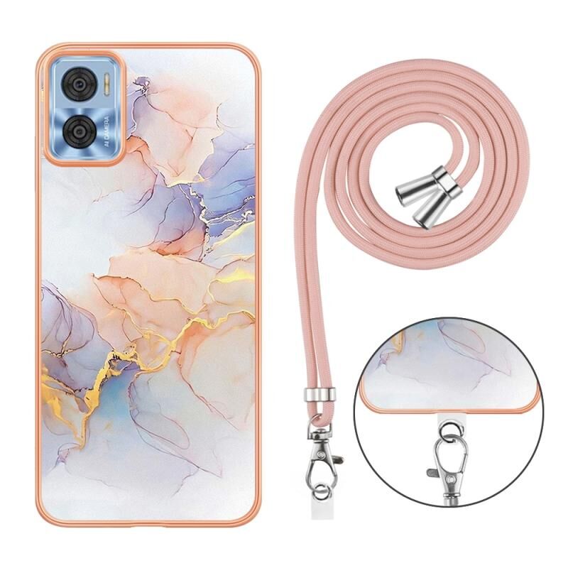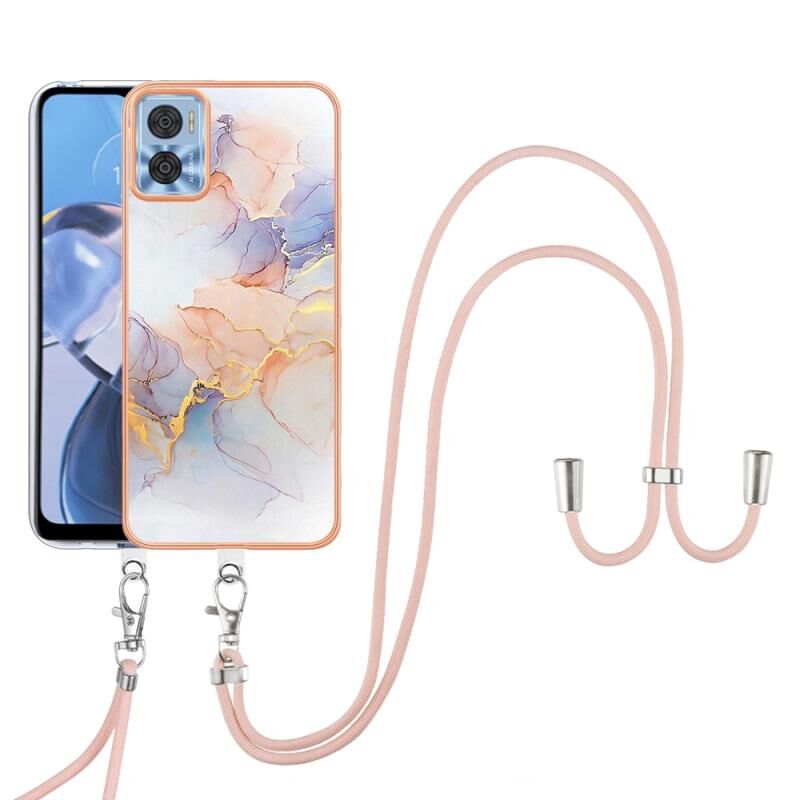 Θήκη κινητού τηλεφώνου Motorola Moto E22/E22i με επιμετάλλωση IMD TPU με κορδόνι (Λευκό Μάρμαρο)