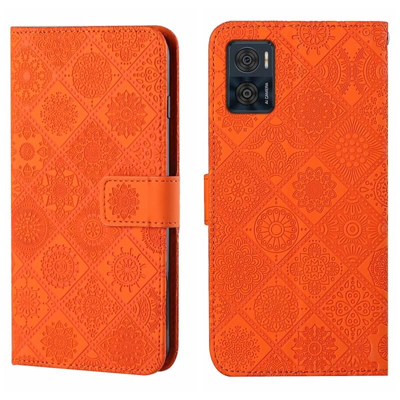 Για Motorola Moto E22 / E22i Ethnic Style ανάγλυφο μοτίβο δερμάτινη θήκη τηλεφώνου (πορτοκαλί)