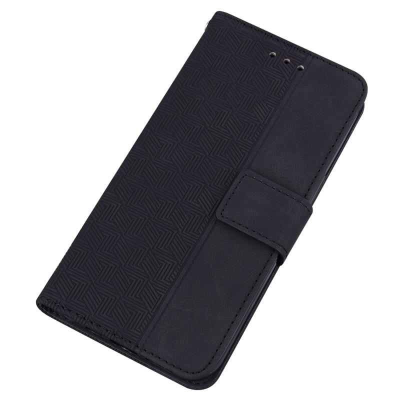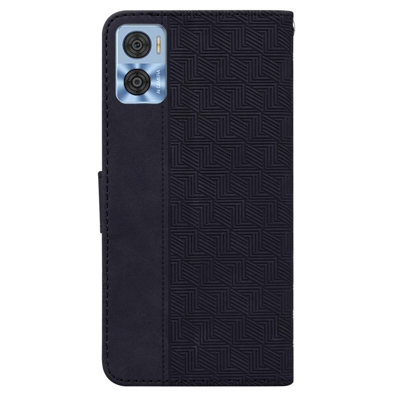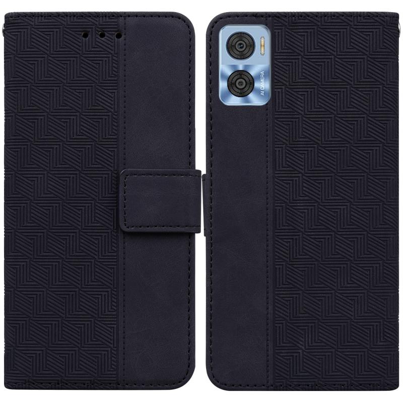 Θήκη τηλεφώνου τύπου flip από δέρμα με γεωμετρικό ανάγλυφο για Motorola Moto E22/E22i (Μαύρο)