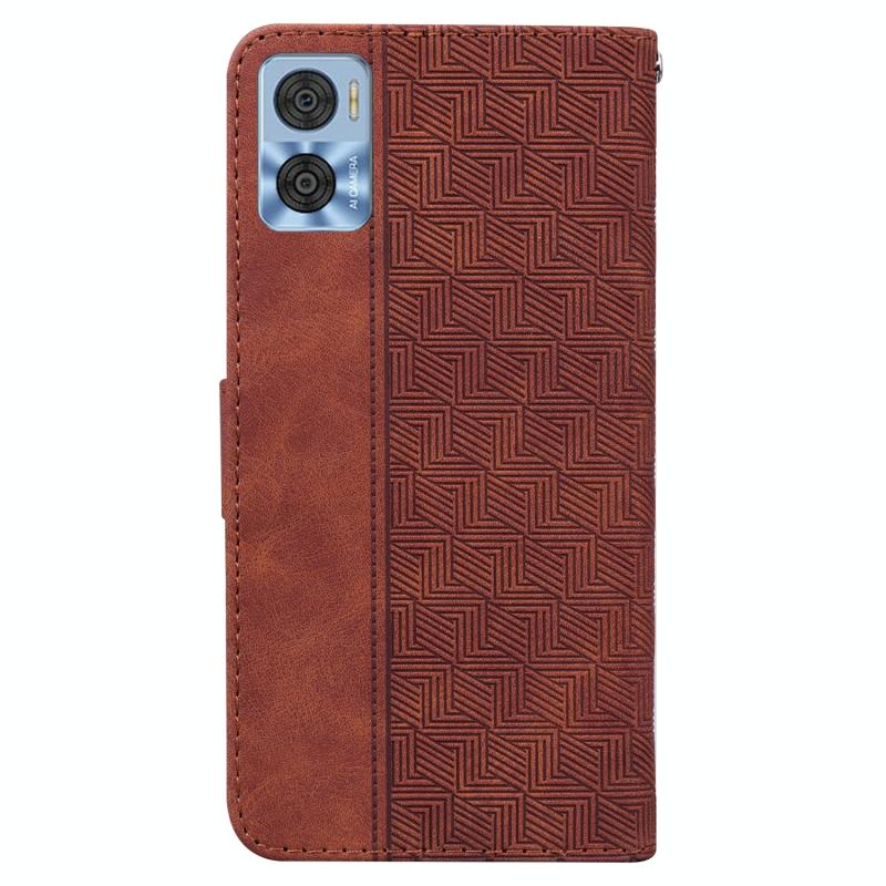 Θήκη τηλεφώνου τύπου flip από δέρμα με γεωμετρικό ανάγλυφο για Motorola Moto E22/E22i (Καφέ)