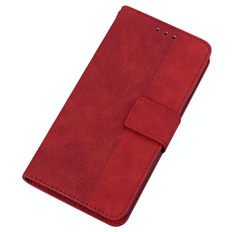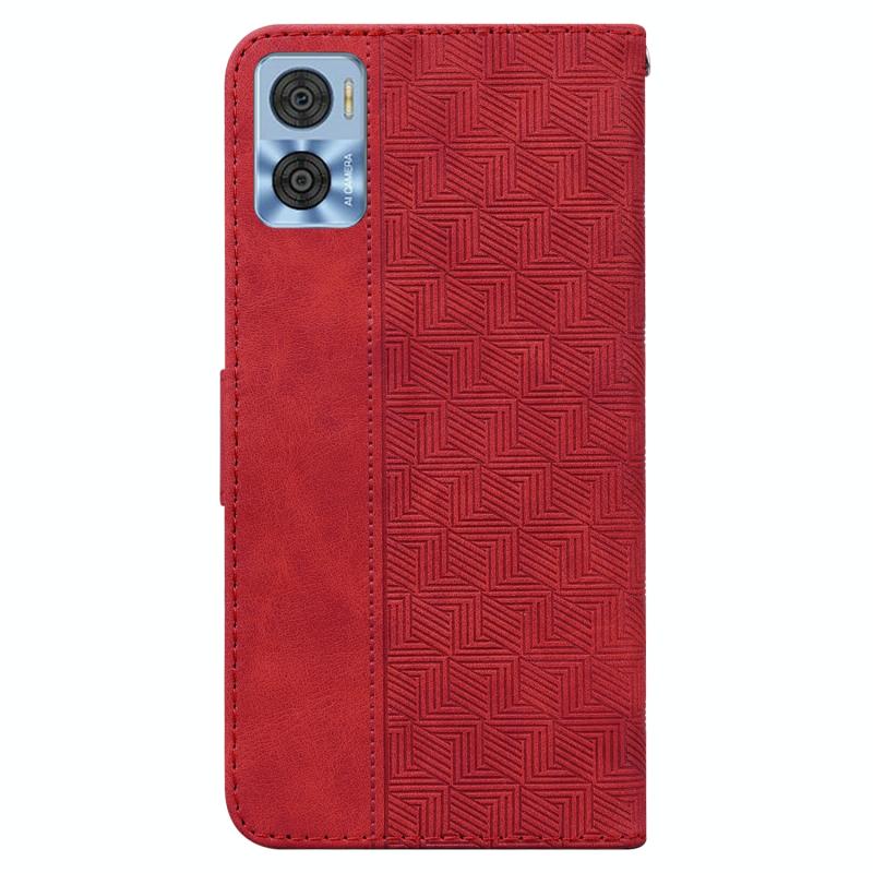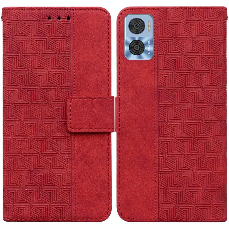 Θήκη τηλεφώνου τύπου flip από δέρμα με γεωμετρικό ανάγλυφο για Motorola Moto E22/E22i (Κόκκινο)