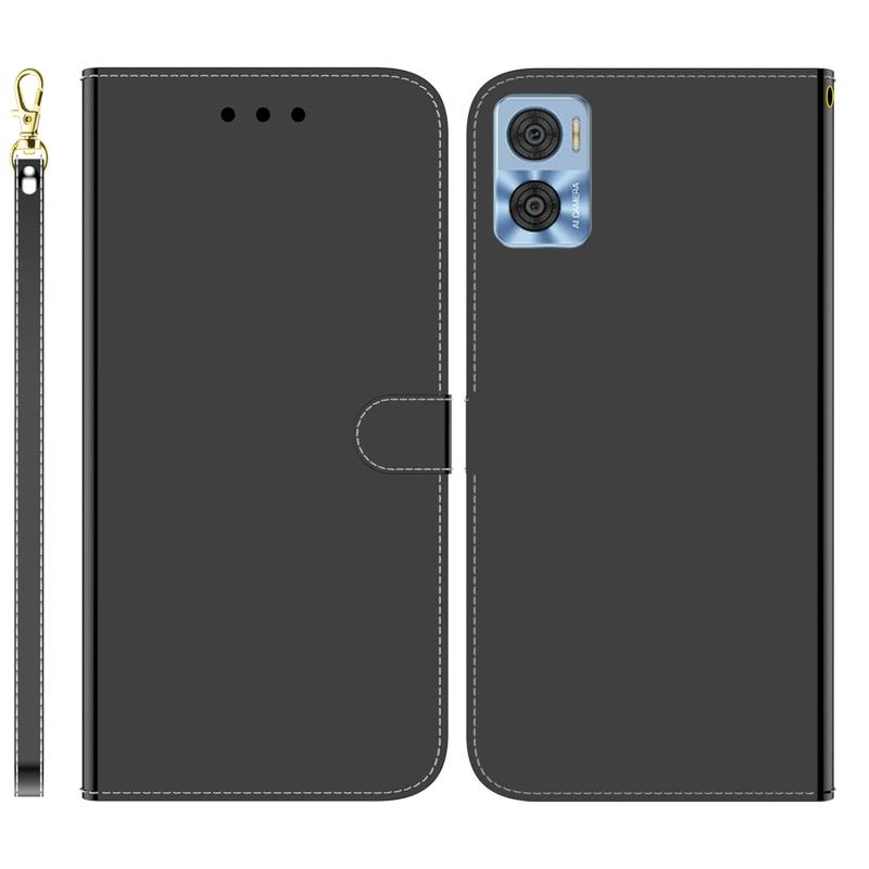 Θήκη τηλεφώνου από δερματίνη με καθρεφτισμένη επιφάνεια για Motorola Moto E22/E22i (Μαύρο)