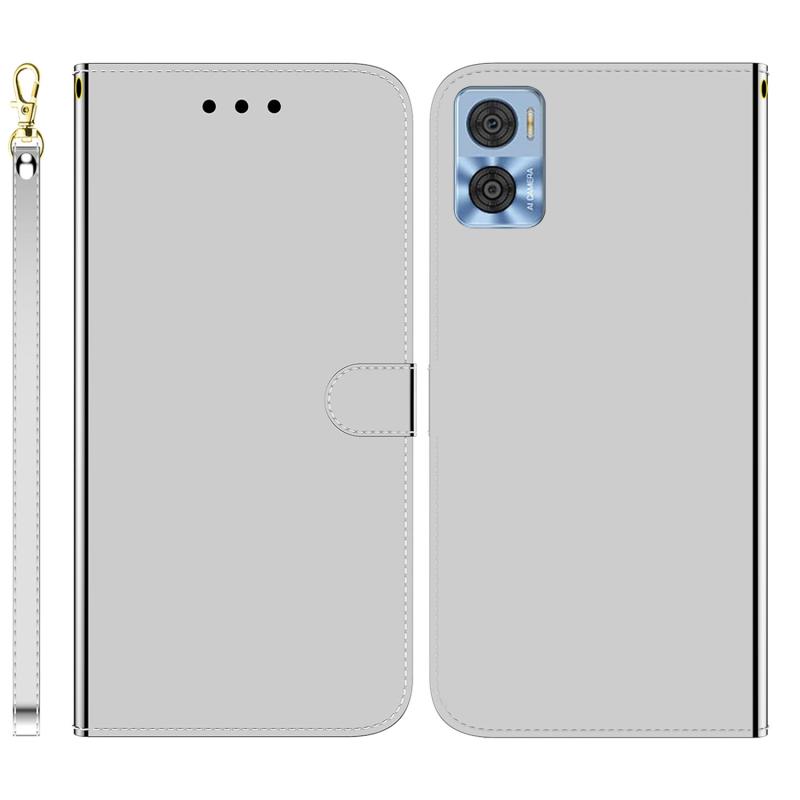 Θήκη τηλεφώνου από δερματίνη με καθρεφτισμένη επιφάνεια για Motorola Moto E22/E22i (Ασημί)