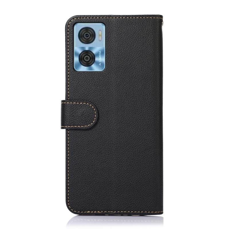 Θήκη κινητού τηλεφώνου Motorola Moto E22/E22i KHAZNEH με υφή δέρματος λυτσί και προστασία RFID (Μαύρο)