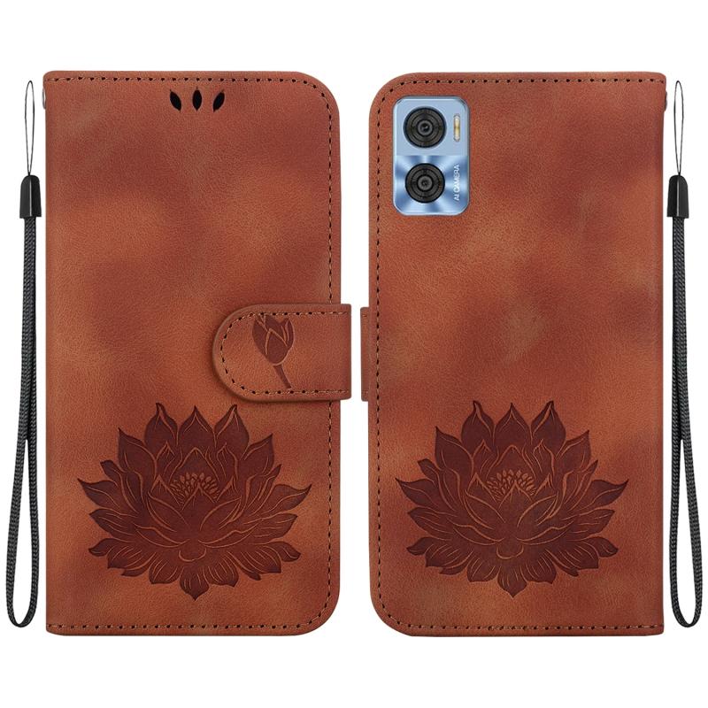 For Motorola Moto E22 / E22i Lotus Embossed Leather Phone Case(Brown)