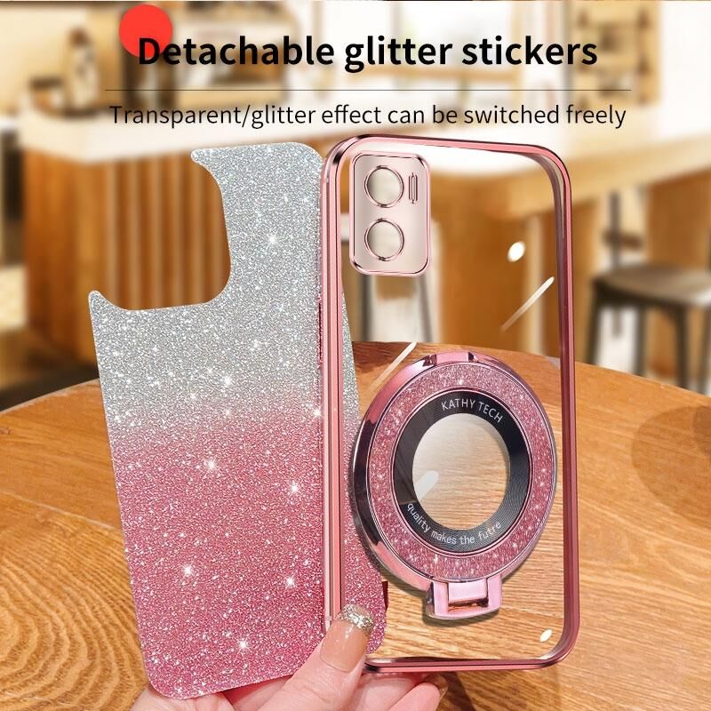 Για Motorola Moto E22 / E22i Επιμεταλλωμένο διαβάθμιση Glitter στρογγυλό κάτοχος TPU τηλέφωνο υπόθεση (Ασημί)