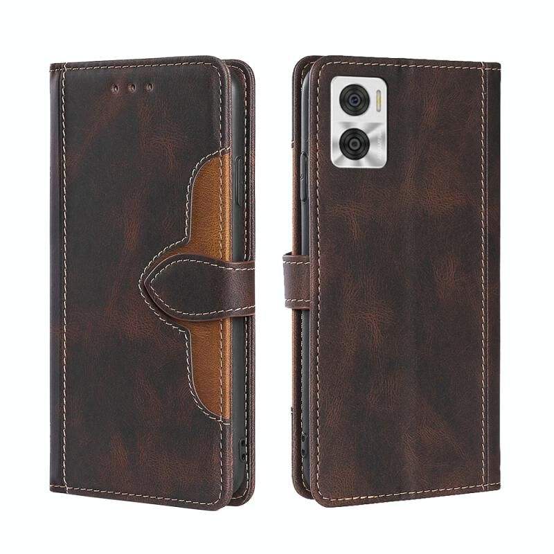 Για Motorola Moto E22/E22i Skin Feel μαγνητική πόρπη δερμάτινη θήκη τηλεφώνου (καφέ)