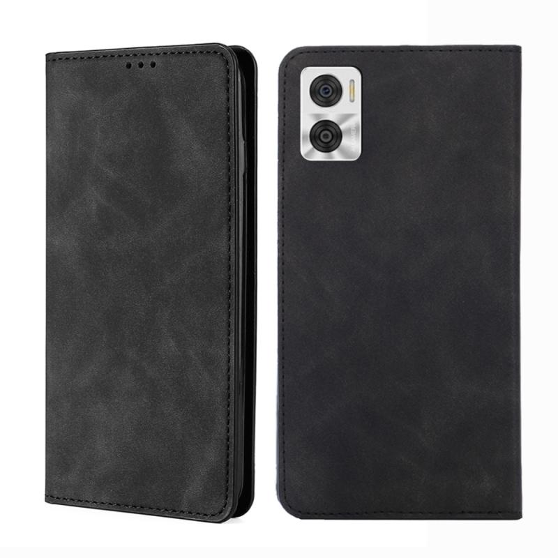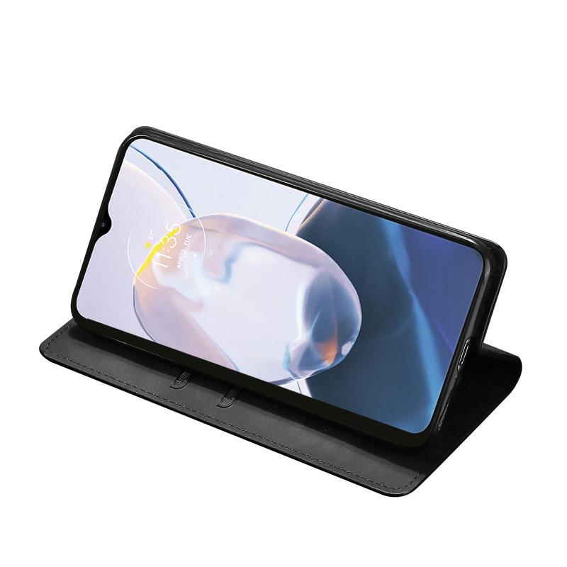 Θήκη τηλεφώνου δερμάτινη, οριζόντια, μαγνητική, με αίσθηση δέρματος για Motorola Moto E22/E22i (Μαύρο)