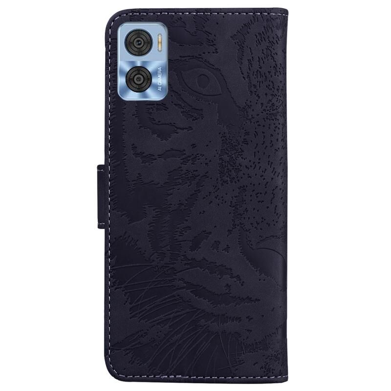 Θήκη τηλεφώνου από δέρμα με οριζόντιο άνοιγμα και ανάγλυφο σχέδιο τίγρης για Motorola Moto E22/E22i (Μαύρο)
