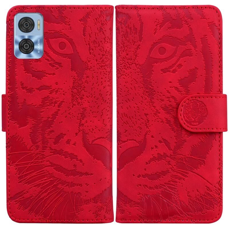 Θήκη τηλεφώνου από δέρμα με οριζόντιο άνοιγμα και ανάγλυφο σχέδιο τίγρης για Motorola Moto E22/E22i (Μαύρο)