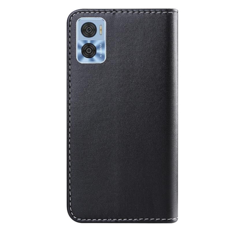 Για Motorola Moto E22/E22i Τρίχρωμη ραφή οριζόντια Flip δερμάτινη θήκη τηλεφώνου (Μαύρο)
