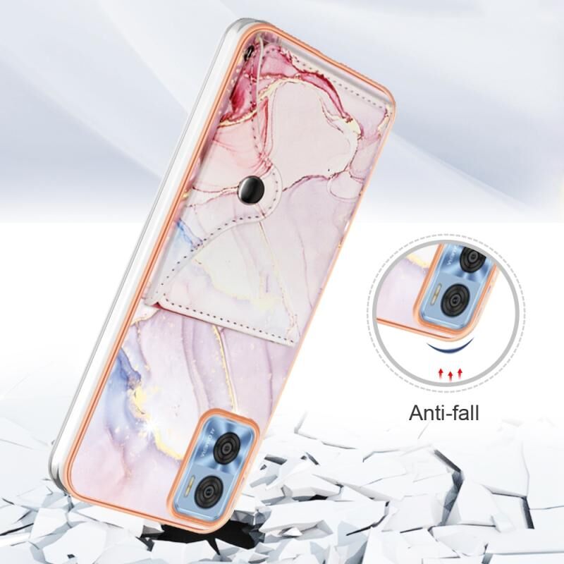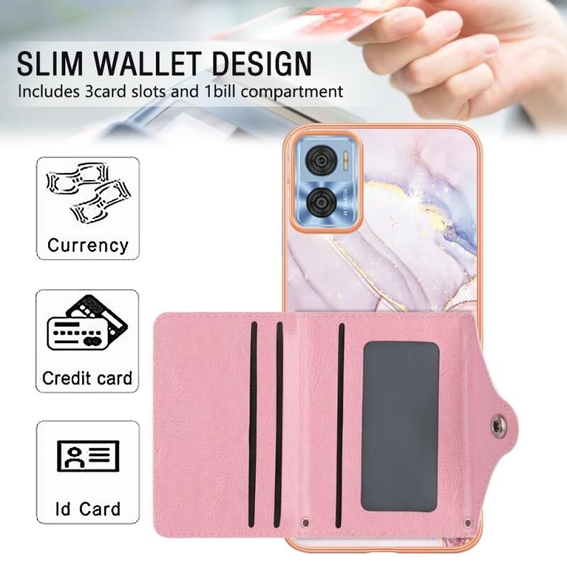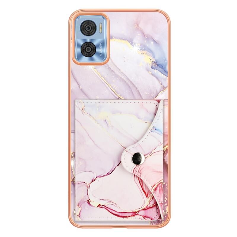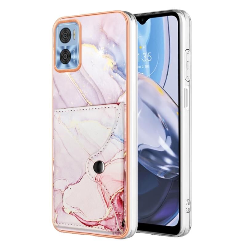 Θήκη κινητού τηλεφώνου με θήκη κάρτας IMD με σχέδιο μαρμάρου για Motorola Moto E22 (Λευκό Γαλαξιακό Μάρμαρο)
