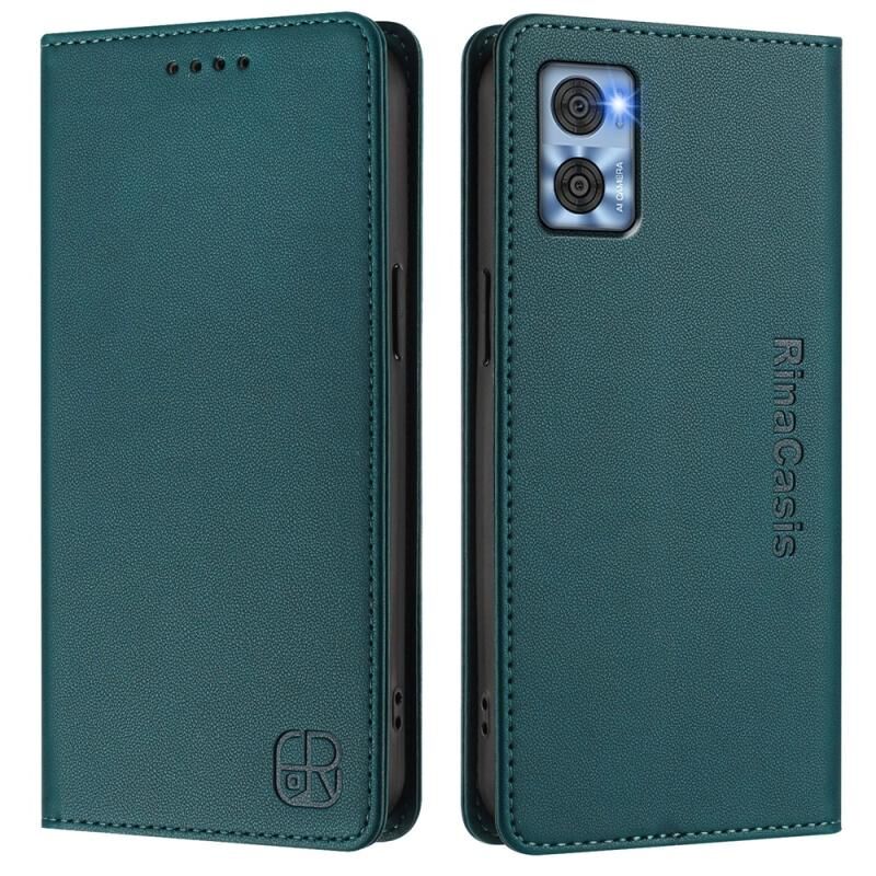 Θήκη τηλεφώνου δερμάτινη με μαγνητική απορρόφηση και διπλή πτυχή για Motorola Moto E22 / Moto E22i RC01 (Μέντας Πράσινο)