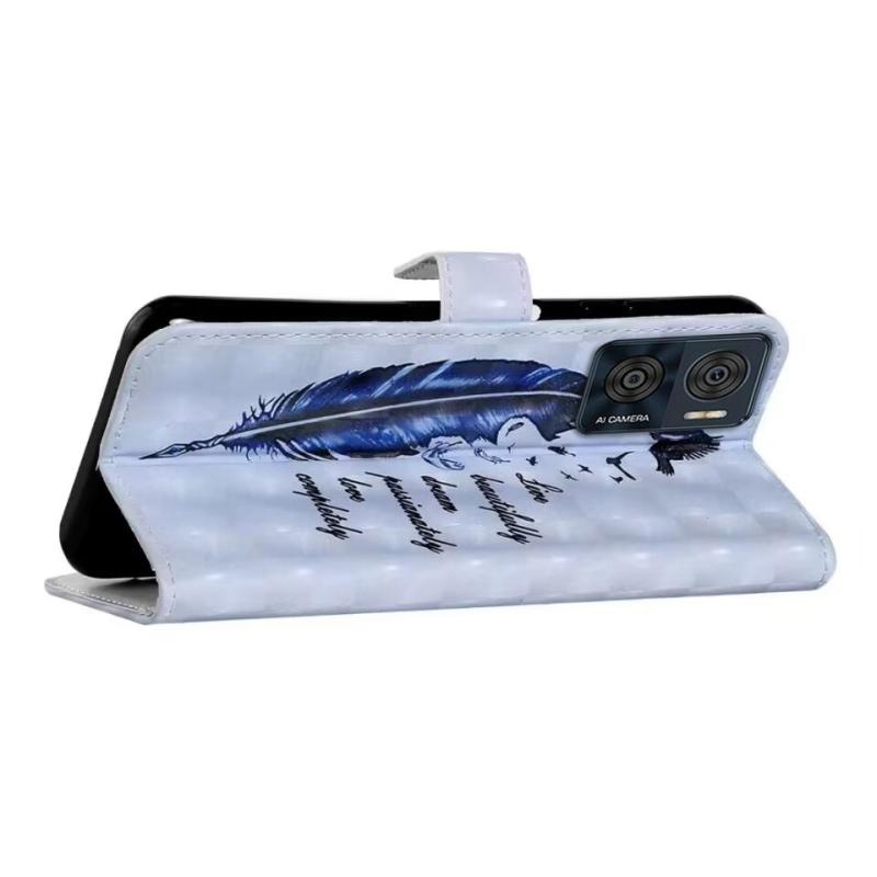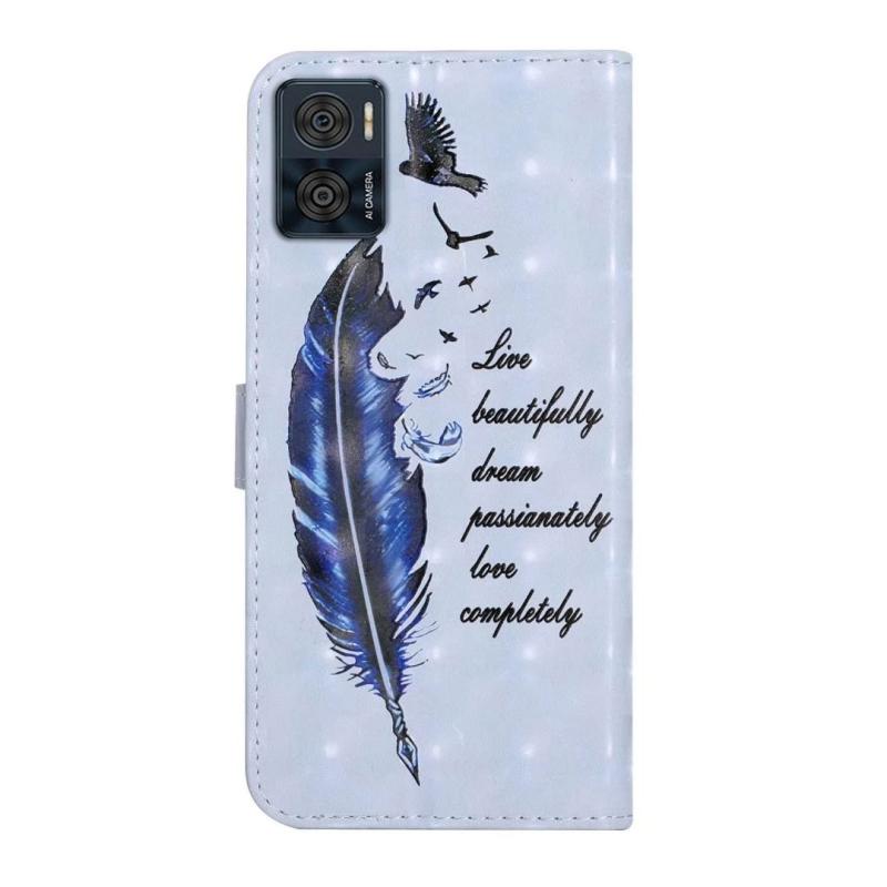 For Motorola Moto E22 Oil Embossed 3D Drawing Leather Phone Case(Blue Feather)