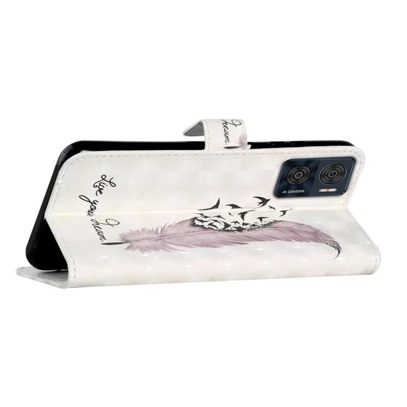 Θήκη τηλεφώνου δερμάτινη με ανάγλυφο σχέδιο λαδιού 3D για Motorola Moto E22 (Φτερό)