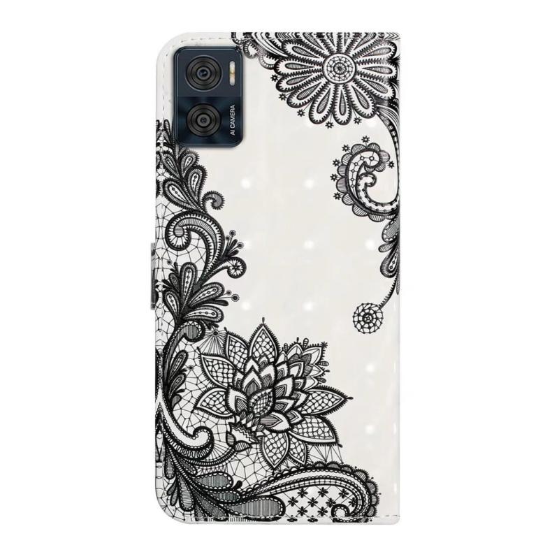 For Motorola Moto E22 Oil Embossed 3D Drawing Leather Phone Case(Lace Flower)