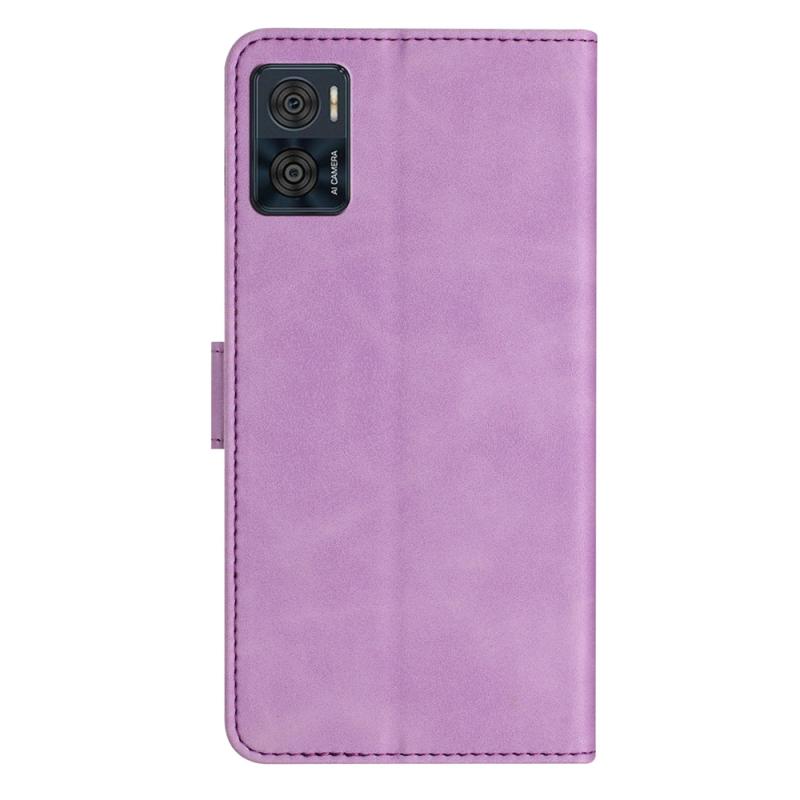 For Motorola Moto E22 Seven Butterflies Embossed Leather Phone Case(Purple)
