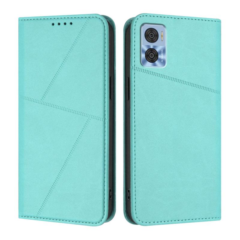 For Motorola Moto E22 Strong Magnetic Frosted Flip Leather Phone Case(Light Blue)