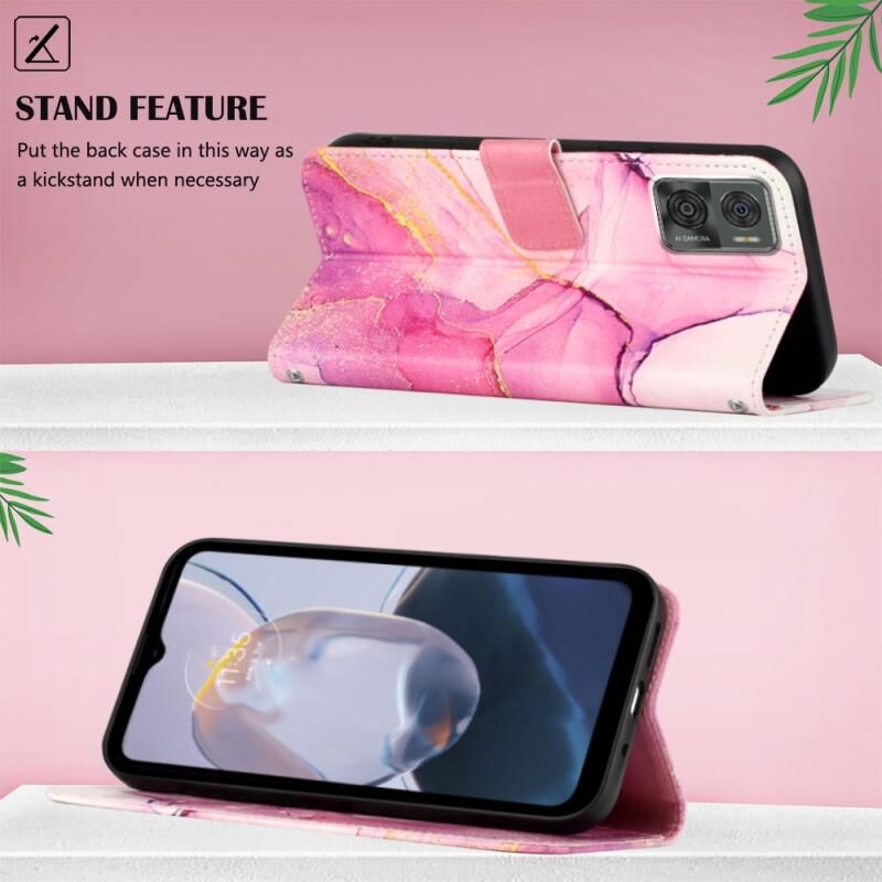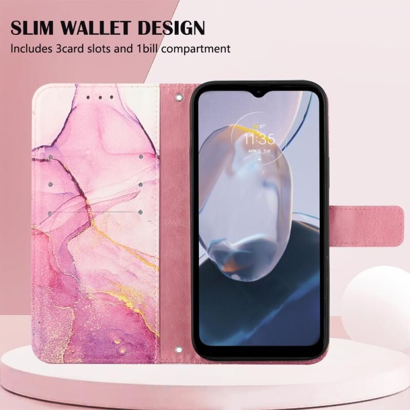 Θήκη τηλεφώνου τύπου flip από δέρμα με σχέδιο μάρμαρου για Motorola Moto E22i 4G/E22 4G PT003 (Ροζ Μωβ Χρυσό LS001)