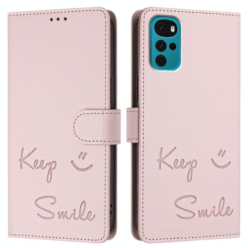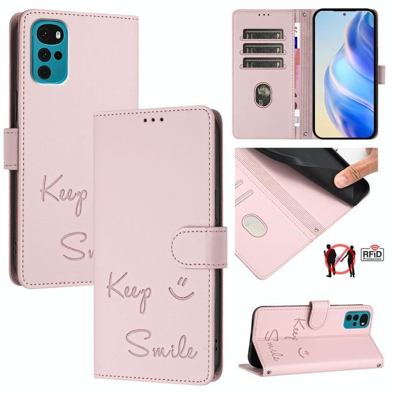Θήκη τηλεφώνου δερμάτινη με ανάγλυφο λογότυπο "Smile" και τεχνολογία RFID για Motorola Moto E22s 4G Global (Μέντας Πράσινο)