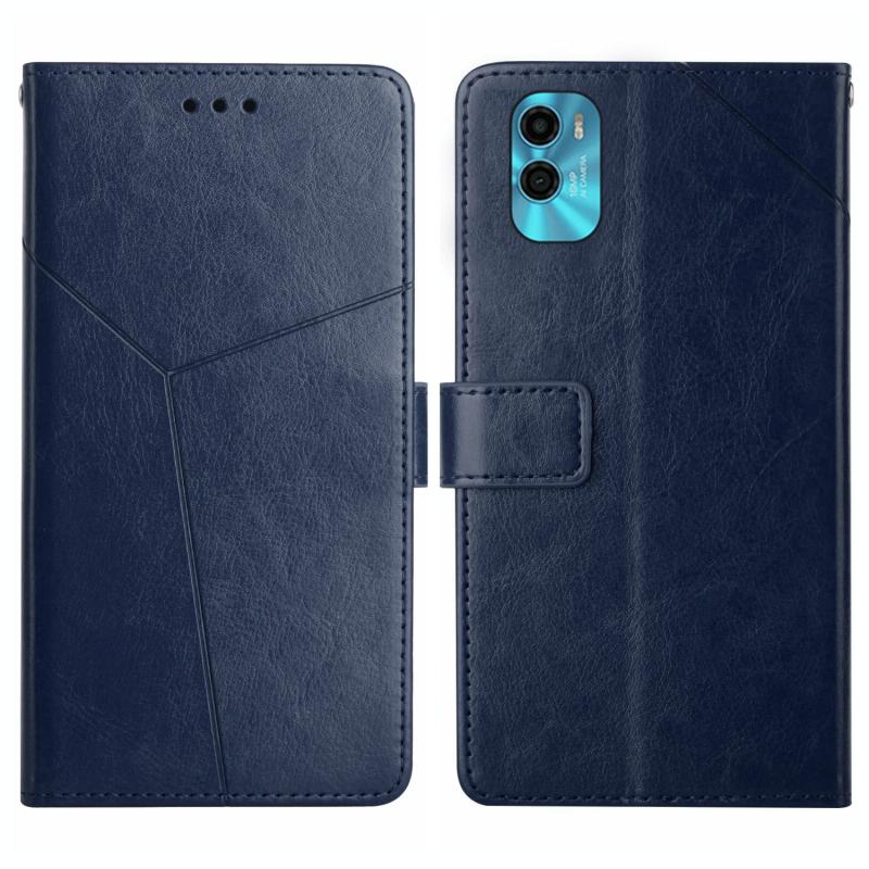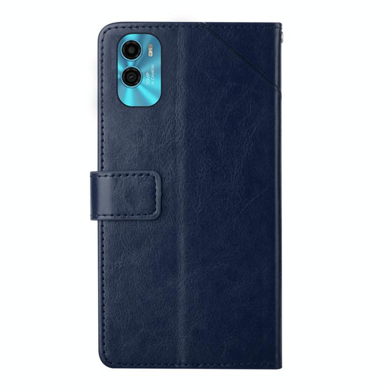 Θήκη τηλεφώνου από δέρμα με σχέδιο flip σε σχήμα Υ για Motorola Moto E22s HT01 (Μπλε)