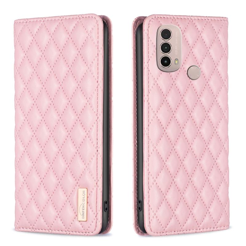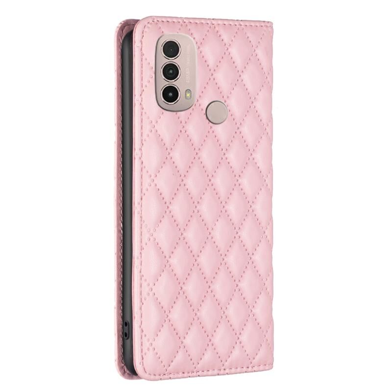 Θήκη τηλεφώνου τύπου flip από δέρμα με μαγνητικό κλείσιμο και διαμαντένιο πλέγμα για Motorola Moto E30 / E40 (ρόζ)
