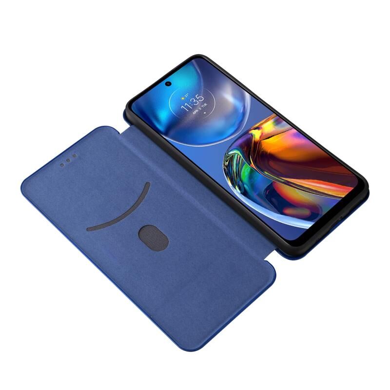 Θήκη τηλεφώνου δερμάτινη, οριζόντια, με υφή ανθρακονημάτων για Motorola Moto E32 4G (Μπλε)